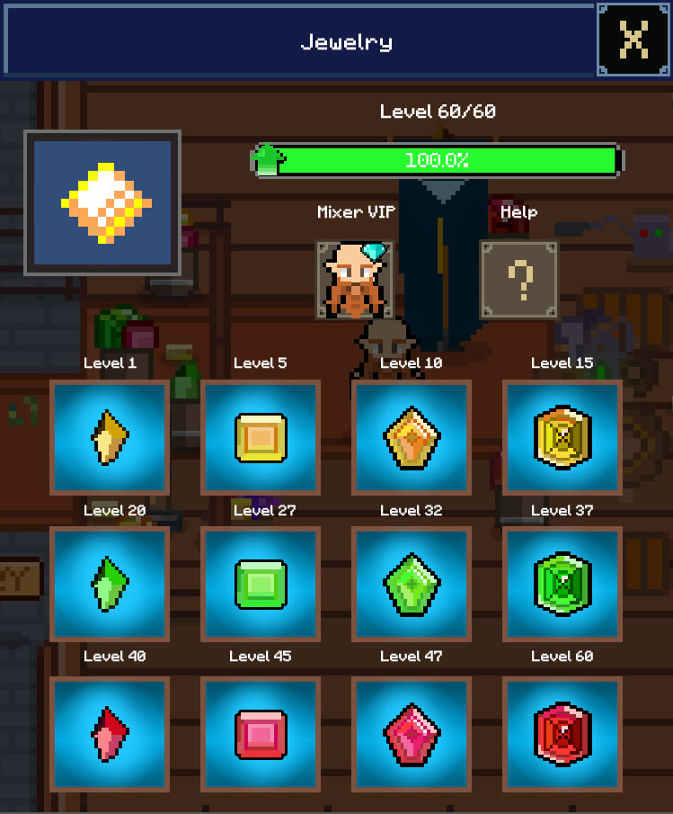 Here you can find the Jewelry progression. You start at level 1 by collecting minerals, and as you combine four of them with your NPC, your profession level will increase, gradually unlocking better minerals.
