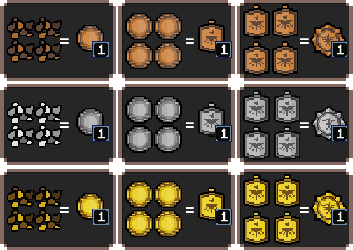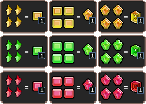 whenever you wish to combine 4 minerals to obtain a higher-grade one,